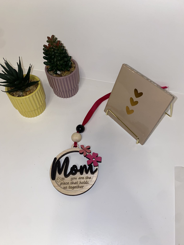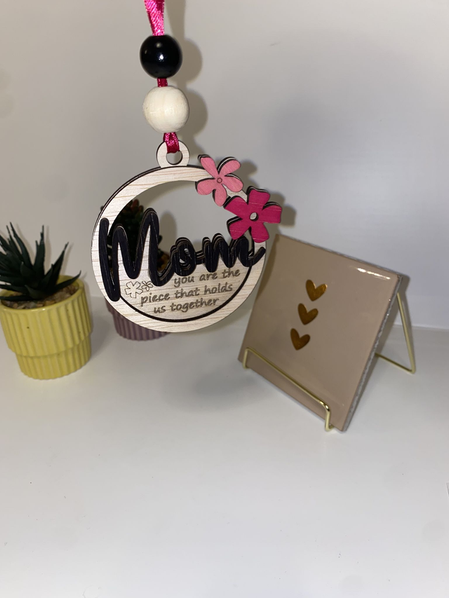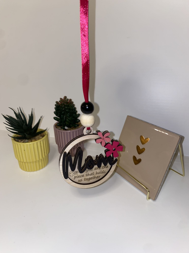 Liefdevol Mom Cadeau – Laser Gesneden Autohanger met Details